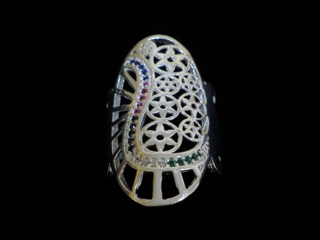 Сребърен пръстен със цветни камъни