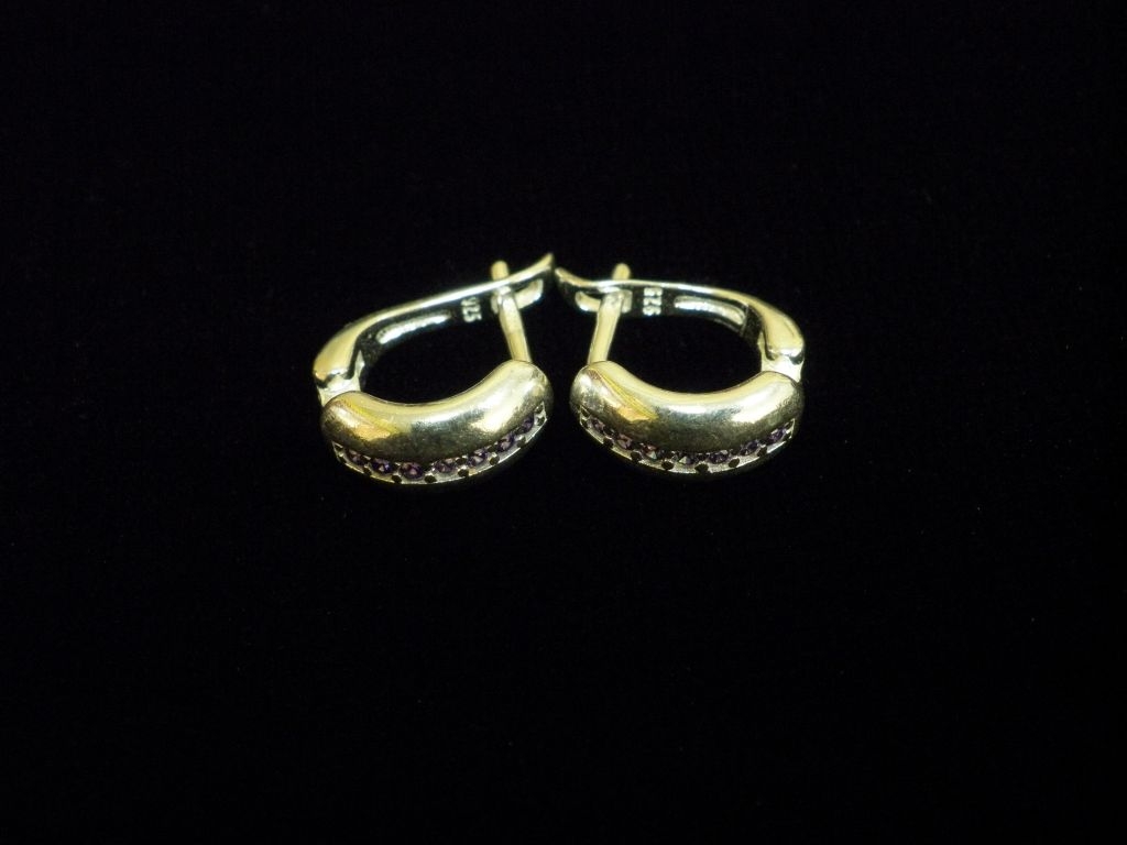 Сребърни обеци с лилави камъни, английско закопчаване