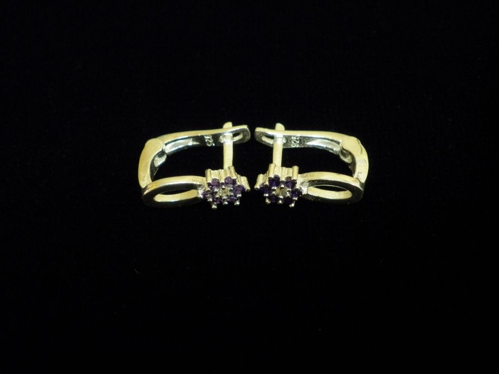 Сребърни обеци с лилави камъни, английско закопчаване