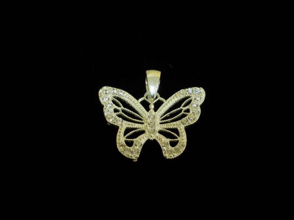Сребърен медальон пеперуда с бели камъни