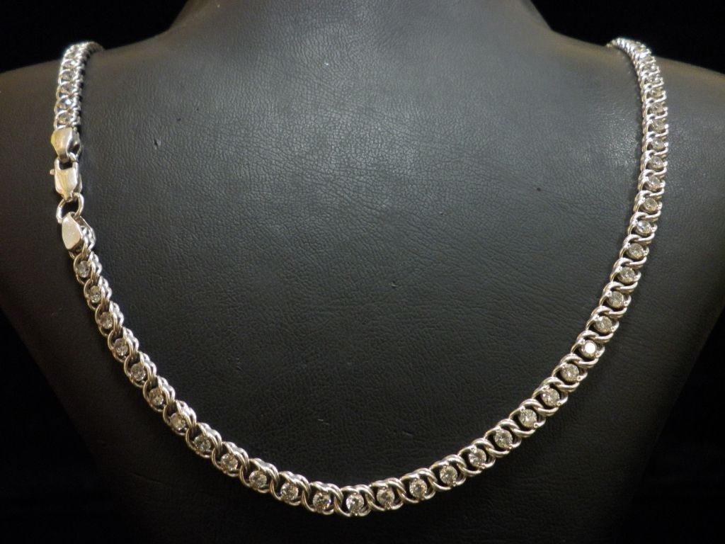Сребърен синджир със бели камъни